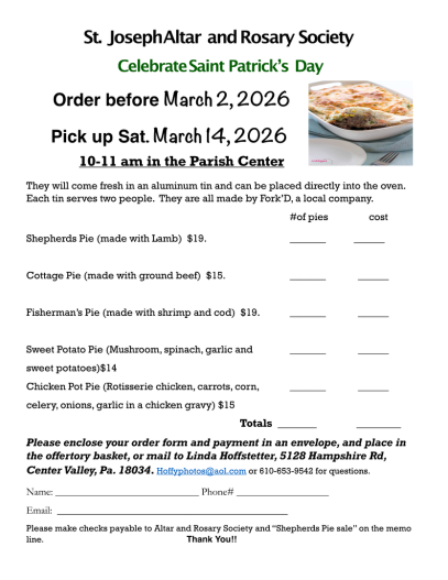 - 3/14 - A&R Society Shepherd's Pie Sale - Order by 3/2: More info below