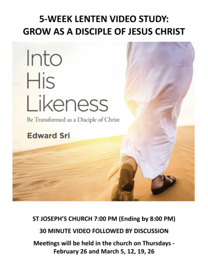 - 2/26-3/26 - "Into His Likeness" Lenten Video Study - Thursdays at 7PM in the church