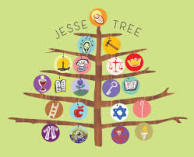 THE JESSE TREE located in front of the pulpit, is an Advent tradition named after Jesse, the father of King David. Biblical symbols representing the ancestry of Jesus, either in faith or in bloodline, are added one by one to the tree starting December 1 st and ending on December 24 th .